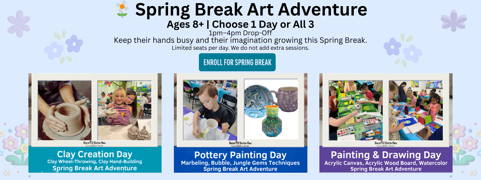Walk-in painting, guided classes, clay experiences, and unforgettable parties.