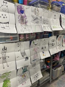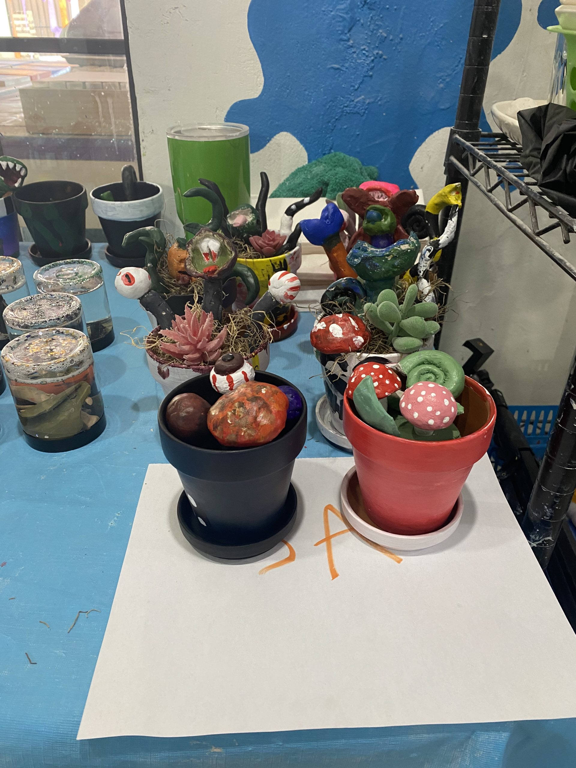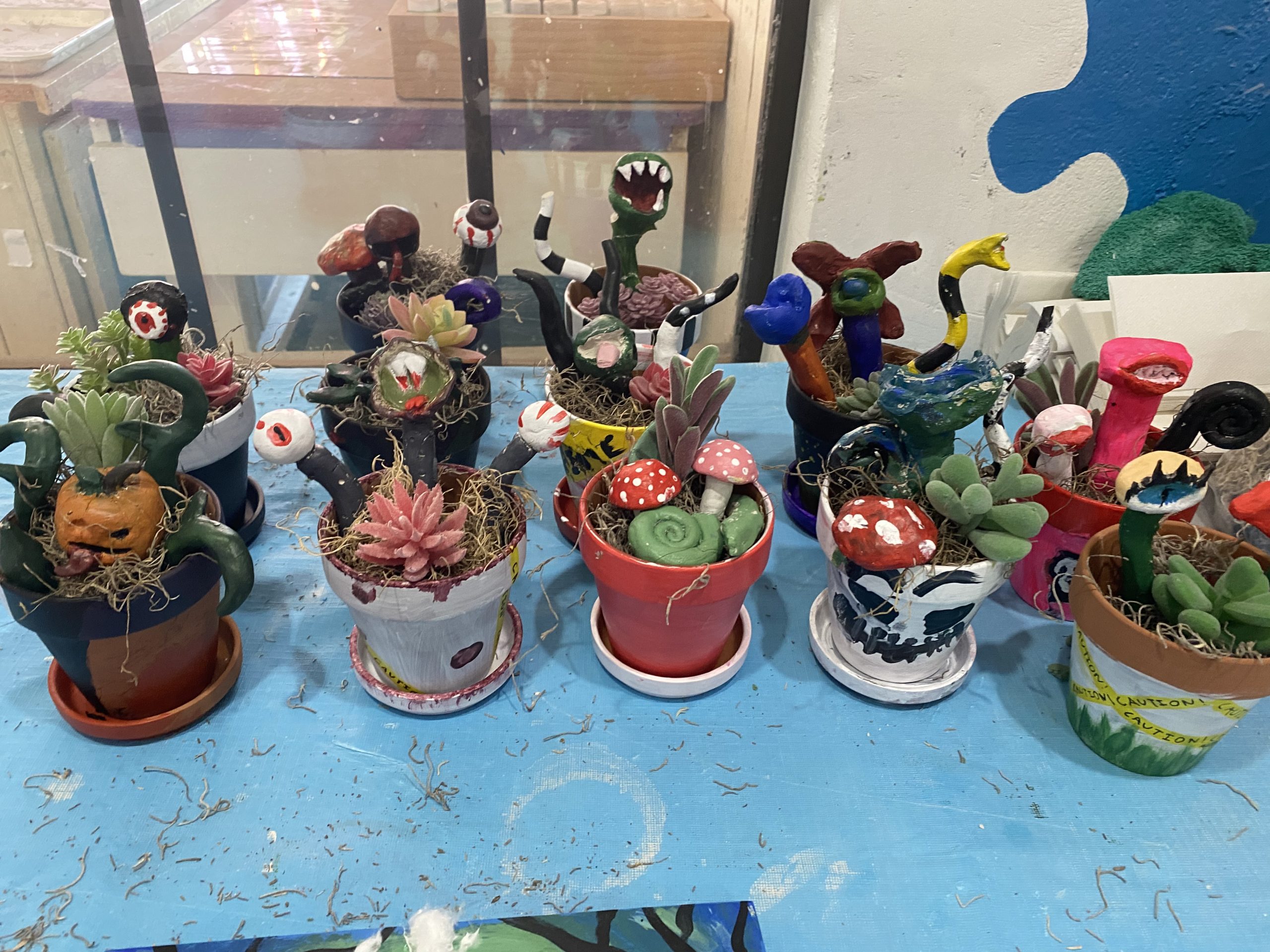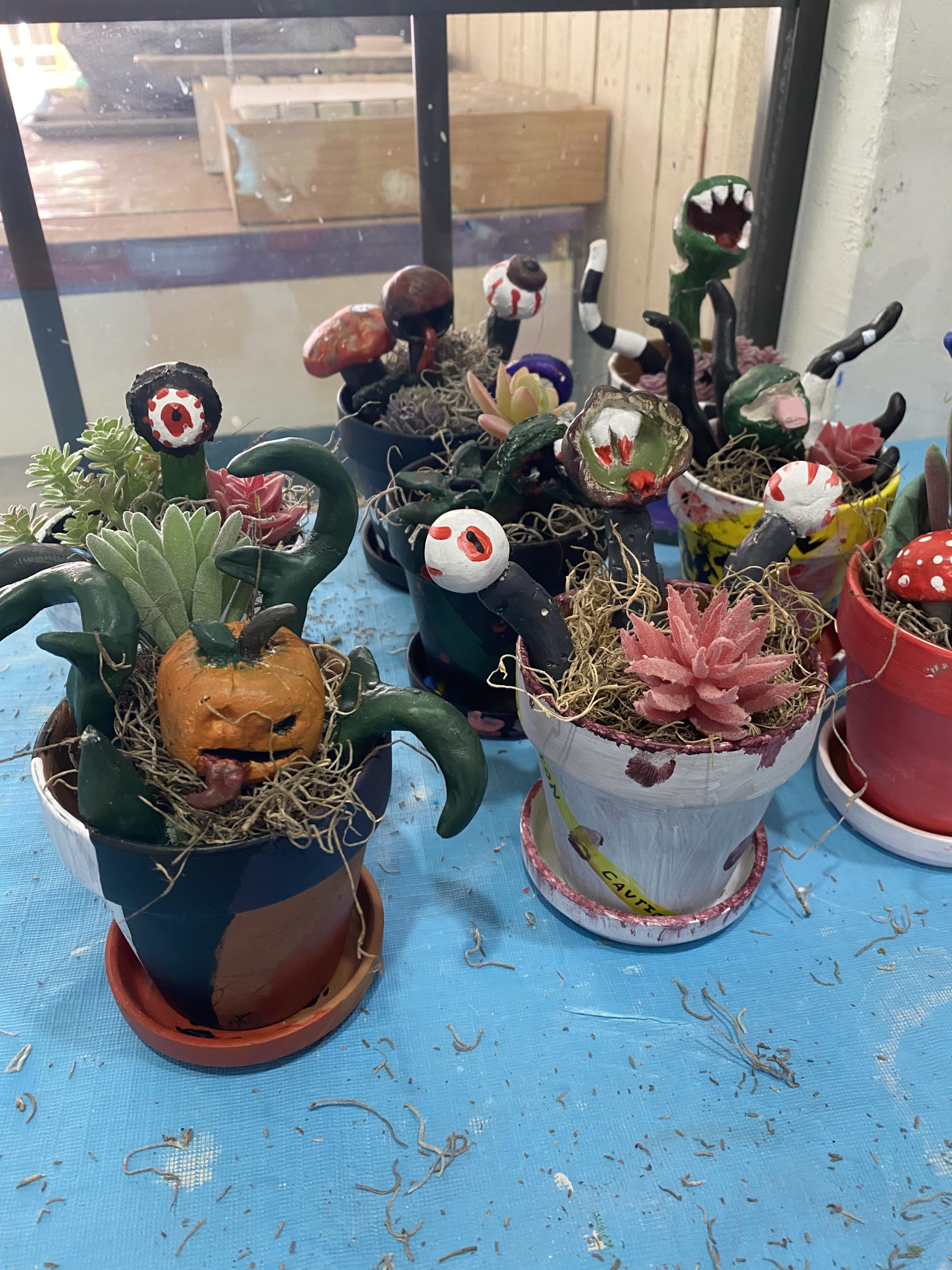 Many of the projects this year required multiple steps to finish the full creation. Another one being the “Ghoulish Garden.” Students work with air dry clay to create monstrous looking plants.