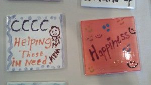 Fresh Out Of The Kiln – Painted Pottery – 36 custom designed ceramic tiles and 36 custom trinkets done by the Chandler Christian Community Center during their retreat team-build event this past Friday. These turned out great, and we are anxious to see them installed on the wall at the community center!!