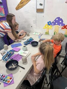 Student learned how to make pinch pot animals, mushrooms jars, slab lanterns, and more! Our instructors go over the entire process of working with clay. They going over the importance of scoring, slipping, and attaching each addition to their clay creations.