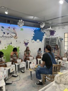 Next step is painting! Students will come back to paint their pieces on their own time, getting to choose between over 50 different colored glazes. We love seeing these finished clay creations come to life!