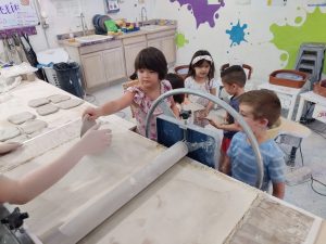 On the second day of camp students take a tour of our back rooms to see the kilns in action! We over how kilns are very different than our normal household ovens, and the importance of making sure our clay pieces have absolutely no water left in them!