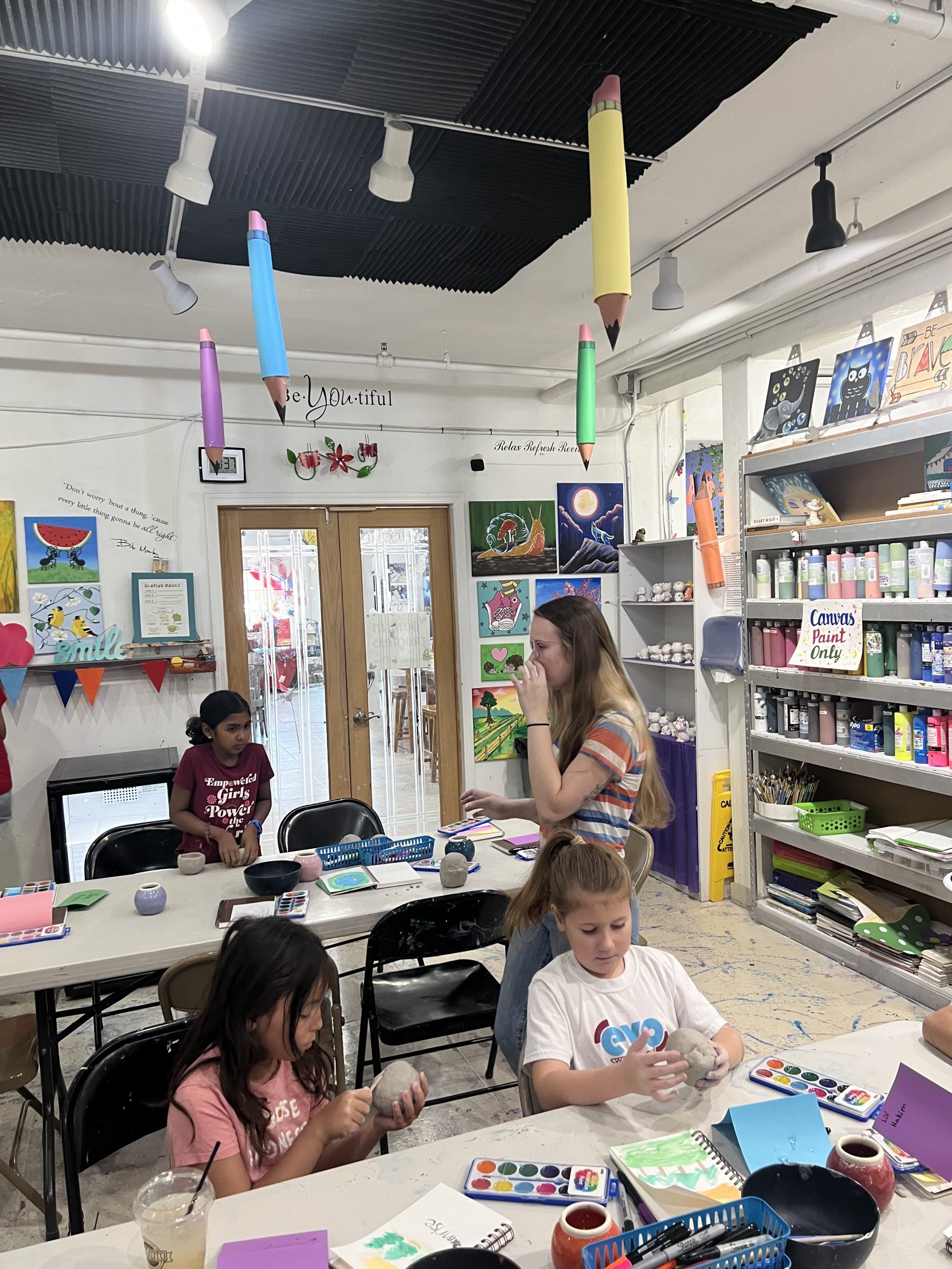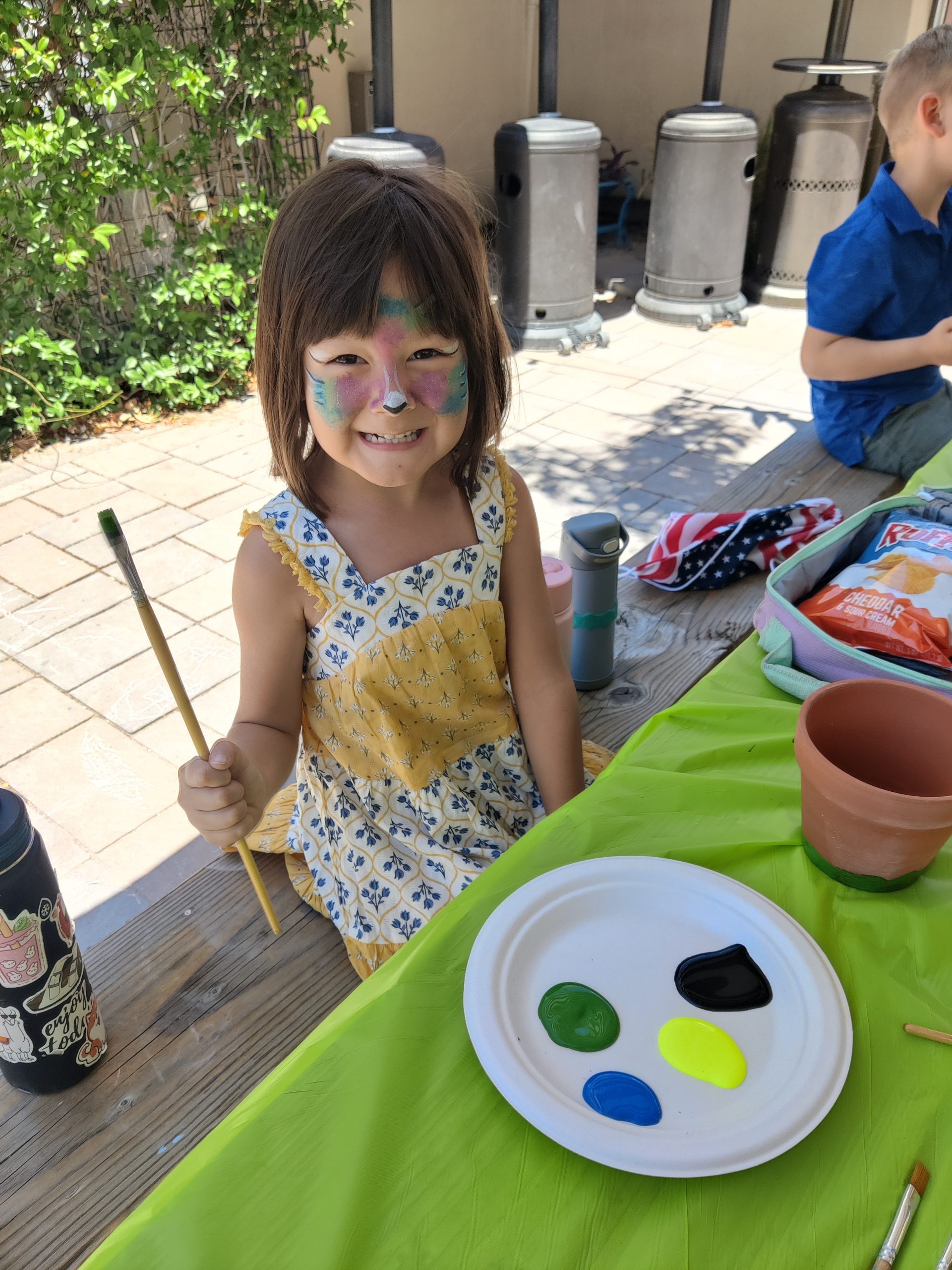 Our end of camp celebration took place on our back patio once all projects were completed! Face painting, games, and painting took place outside at the end of camp! We are so proud of each and every student and all that they accomplished this week, we cant wait to see the painted products!