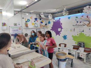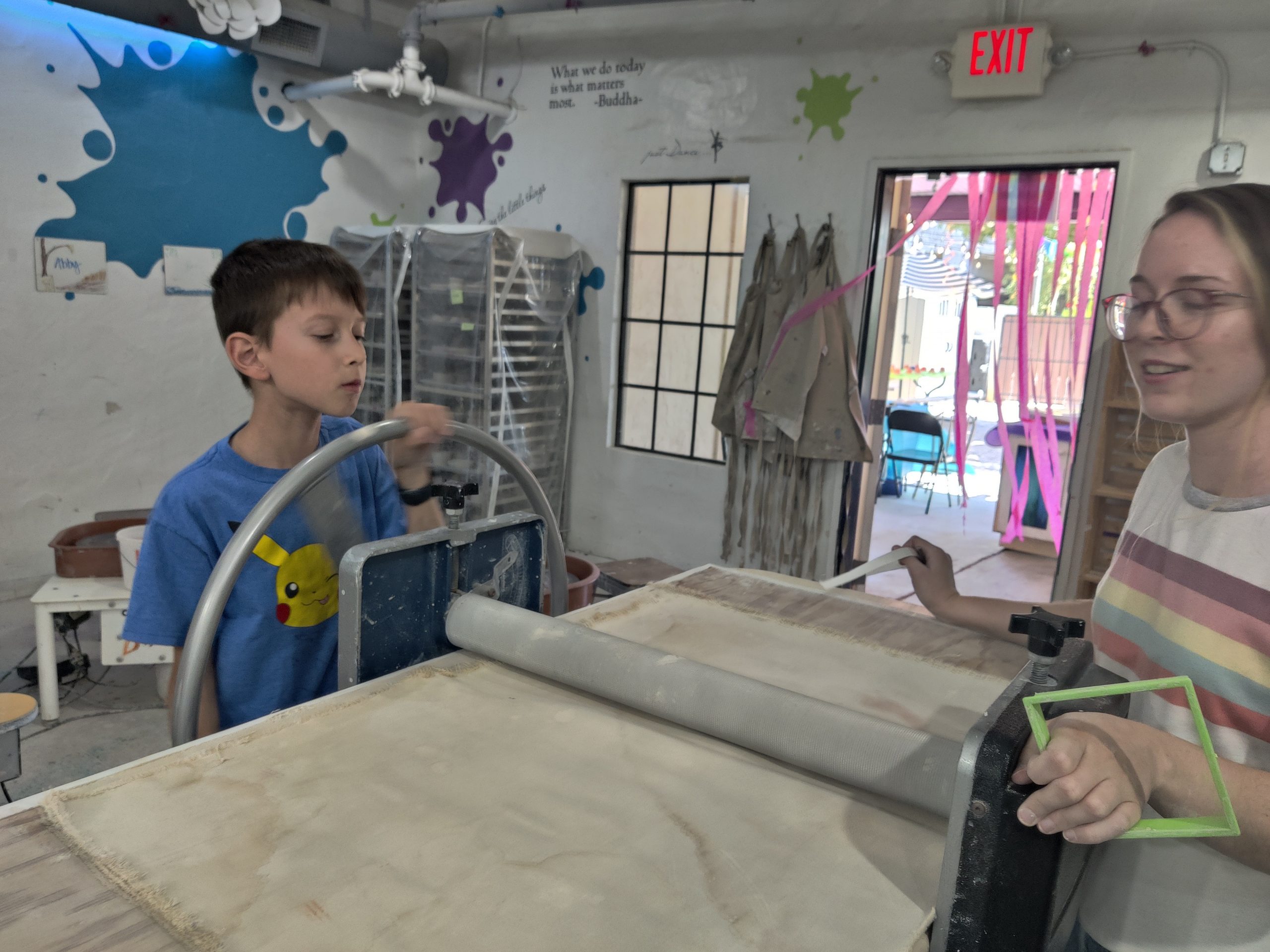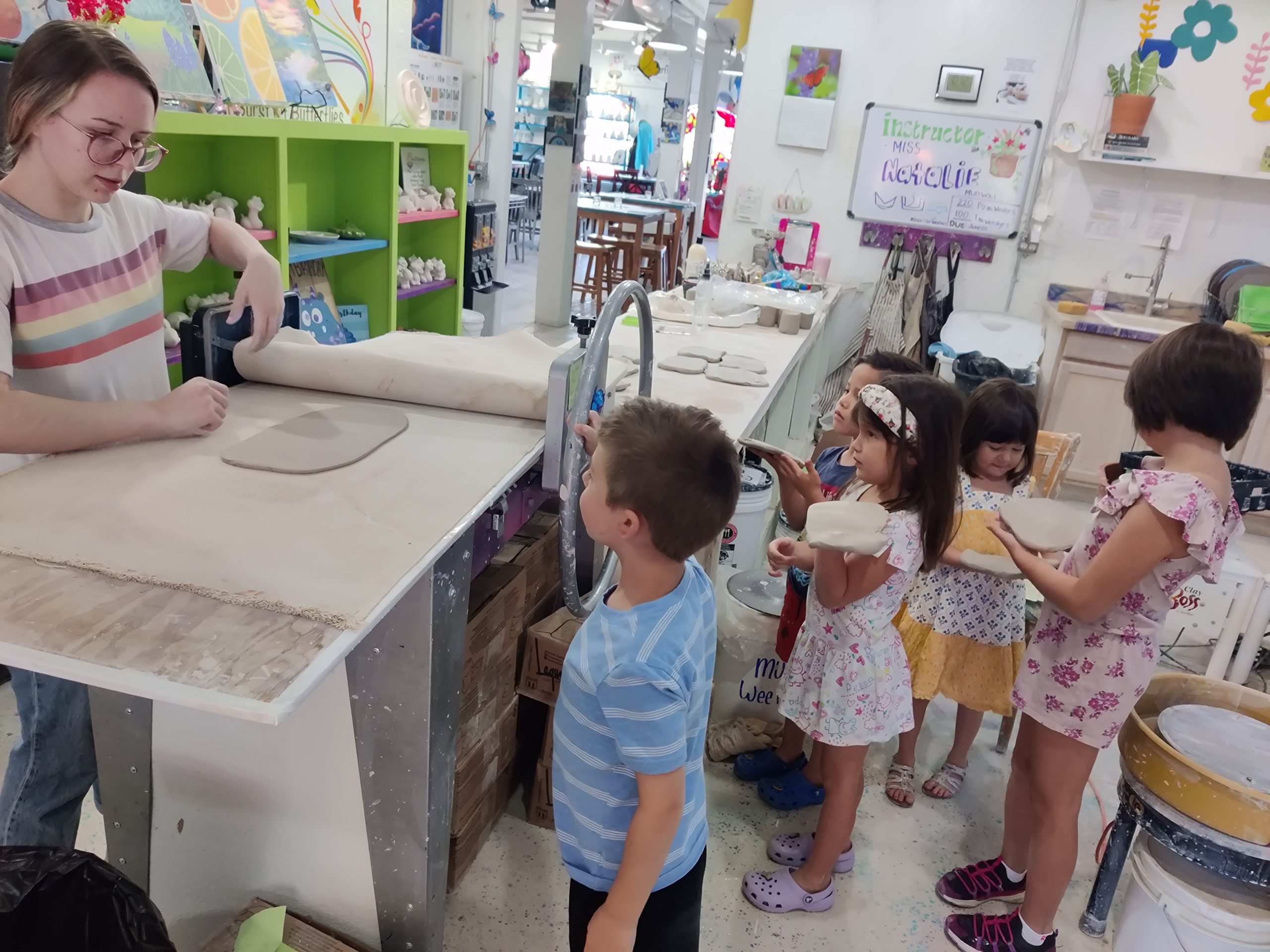 Then, instructors go over the full clay journey, explaining how pieces need to reach a bone-dry state before they can be fired in our kilns.