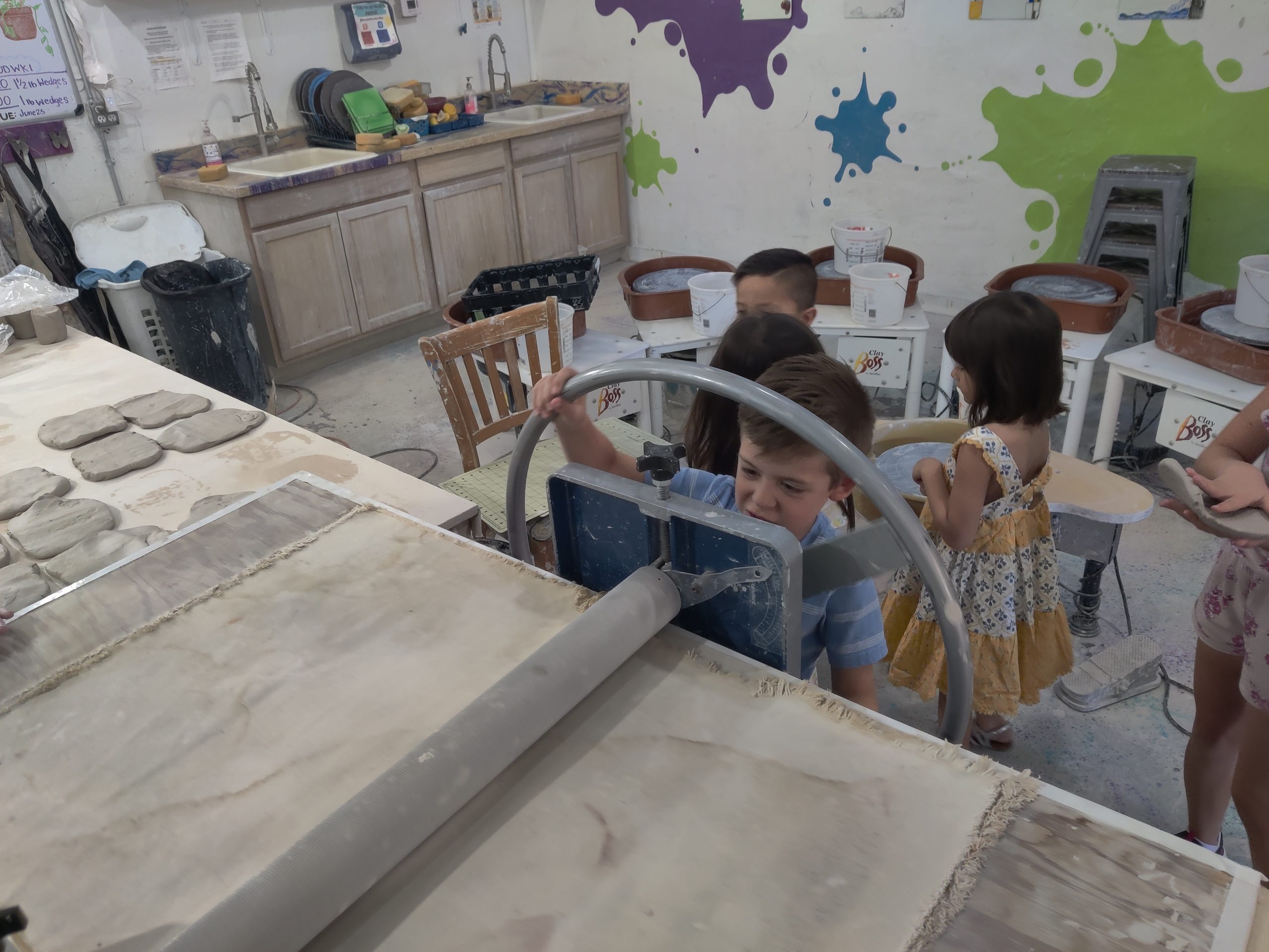 On the second day of camp students take a tour of our back rooms to see the kilns in action! We over how kilns are very different than our normal household ovens, and the importance of making sure our clay pieces have absolutely no water left in them!