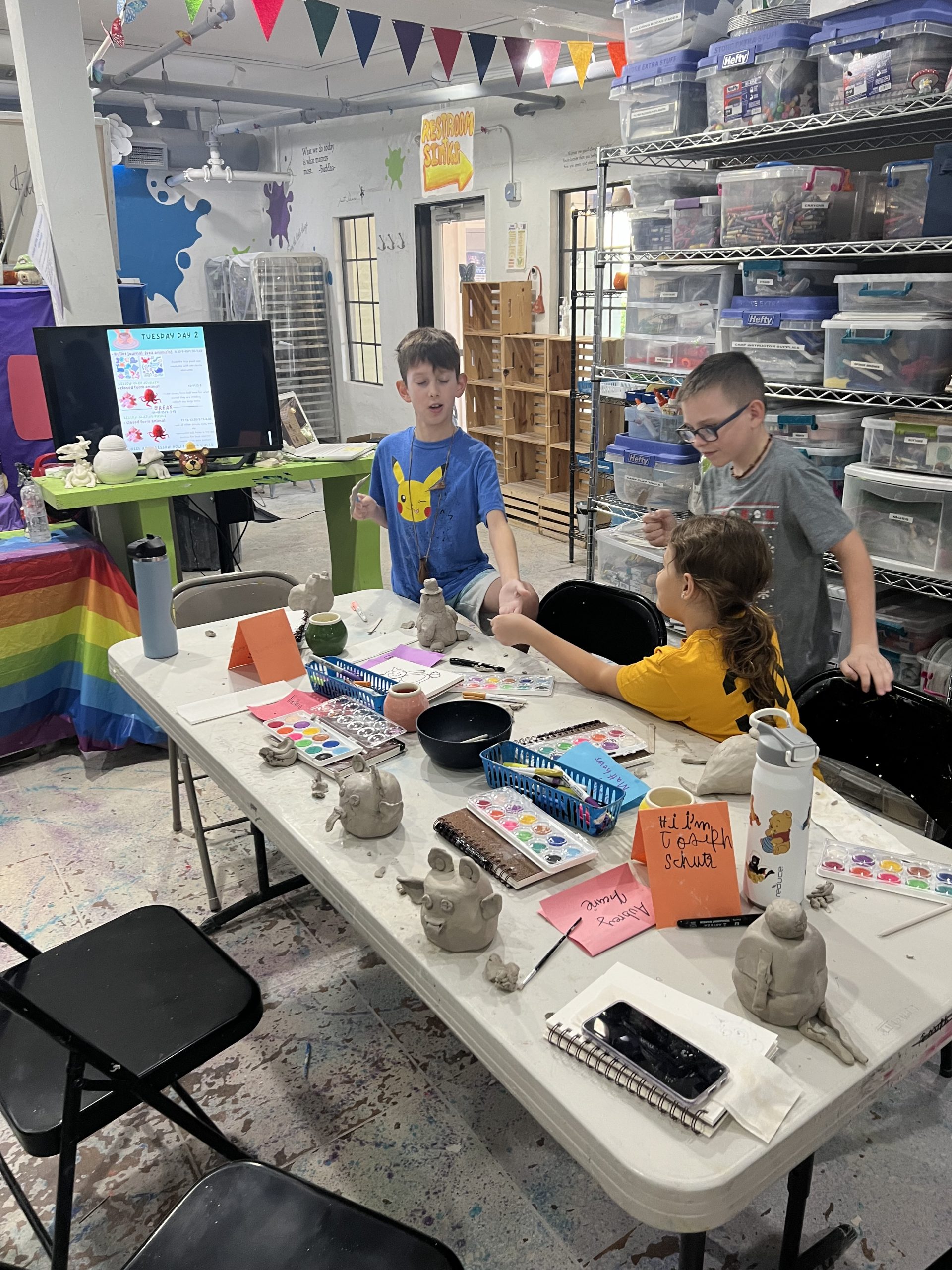 We had an amazing end to Summer Camp 2023 with Mud Week Two and Mud Week Three! These students learned all about working with clay and created their very own unique hand-built pieces. Students made a total of four hand-built pieces and one finished wheel thrown piece.