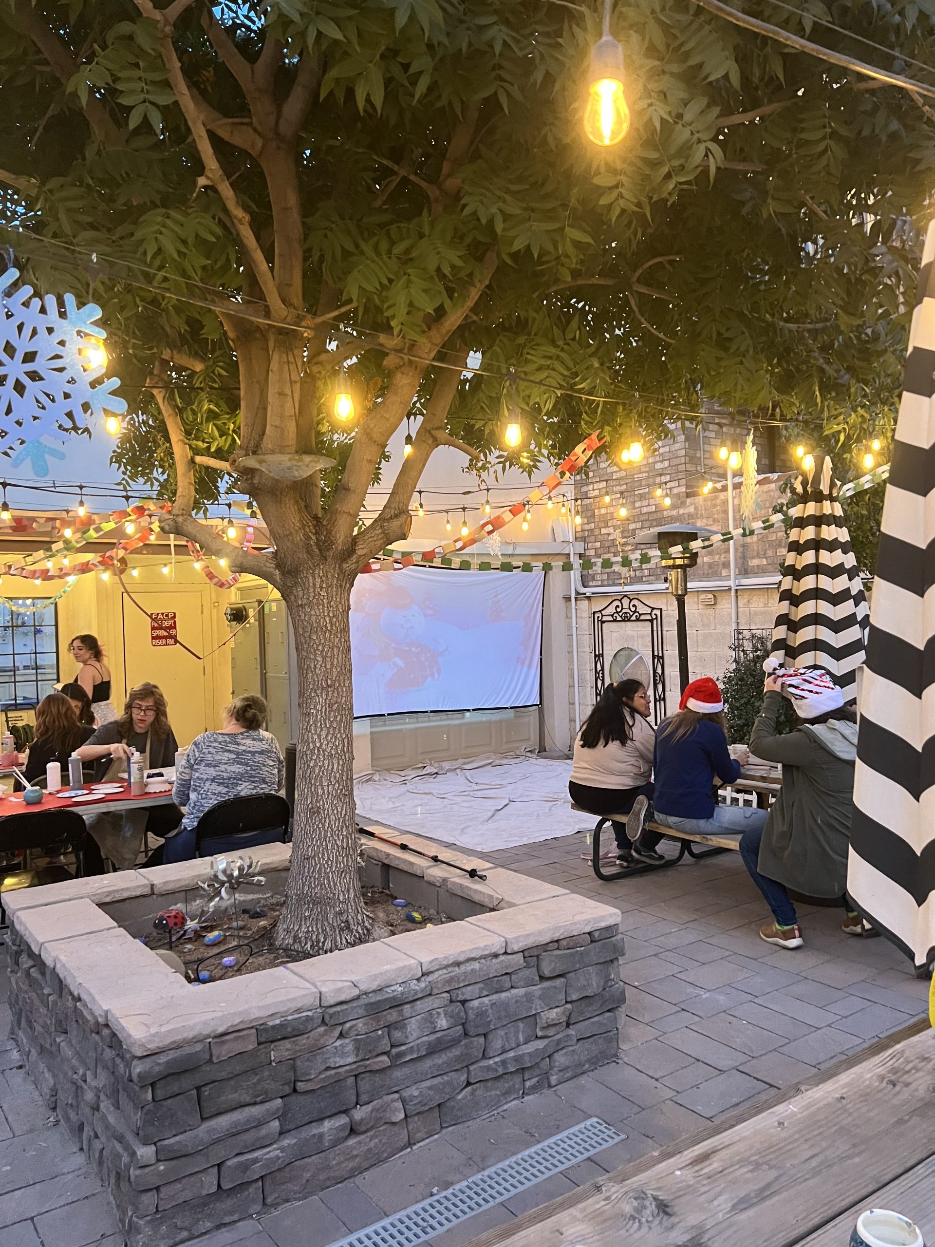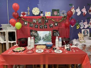 Guests enjoyed hot coco and peppermint treats while a holiday movie was projected on our back patio! Check out our Instagram and TikTok account for more pictures and videos on this special event!