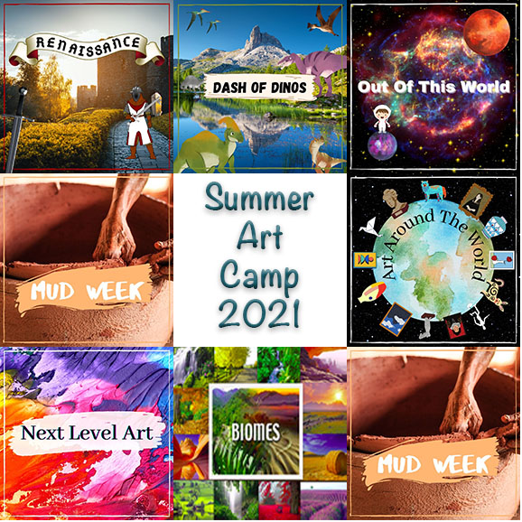 WE WILL BE OFFERING A VIRTUAL ONLINE CAMP WITH ZOOM THIS SUMMER IN ADDITION TO OUR IN-STUDIO CAMP. THIS WILL ALLOW STAY-AT-HOME KIDS WHO WANT TO BE PART OF THE CREATIVE FUN TO PARTICIPATE. A FANTASTIC BOX PACKED FULL OF ALL OF THE SUPPLIES NEEDED FOR CAMP WILL BE PROVIDED AND A SECURE ZOOM SESSION WILL BE PROVIDED TO EACH PARENT/CHILD. Choose the Online option below if you choose to participate remotely.