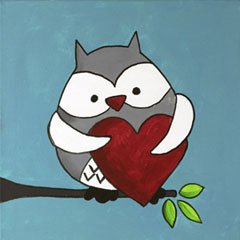 This owl holding a heart is a great canvas design for a special someone.
