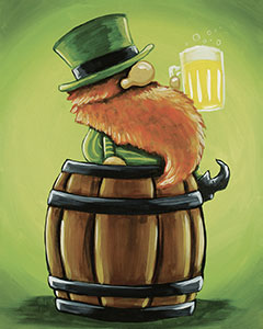 Commemorate St. Patrick’s Day with this painting of a leprechaun stopping for a refreshing pint.