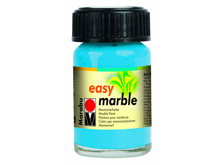 Easy Marble is a solvent-based paint used with water to create quick and elegant marbled patterns on either flat surfaces or dimensional objects. Just drip, swirl, dip and done! It adheres to paper, glass, plastic, metal, wax, wood, papier-mâché, polyester, polypropylene, smooth foam and many other surfaces.