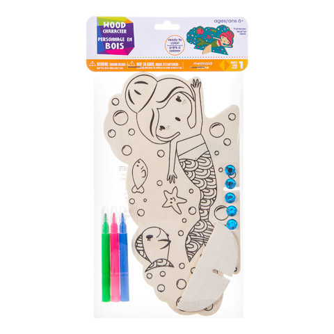 Have fun helping kids decorate this wooden mermaid color-in. It makes a fun creative activity and a pretty stand-up display when complete. Each color-in is 9 inches long and comes with 3 markers: blue, pink and green. Ages 6+.