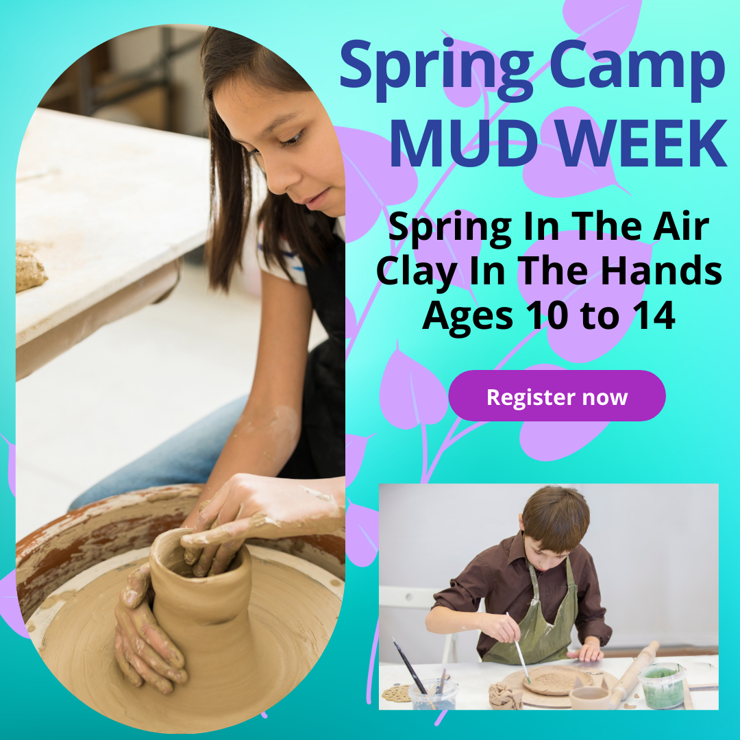 Burst Of Butterflies Studio has an exciting Spring Break Art Program for ages 10 to 14. Mud Week Spring Edition. Utilizing clay in hand-building and wheel throwing, we will be creating five winter themed projects as well as sketching, drawing and painting in an art journal. Kids love Mud Week!