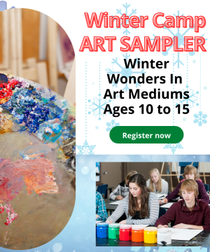 We have themed camps three hours per day for four days packed full of art projects. Each week is a different theme. The Winter Wonders In Art Mediums Art Sampler focuses on a variety of art mediums throughout the week including clay hand-building, canvas painting, pottery painting, wood board art, mixed media, art journaling, water color painting, polymer clay, glass, and more.