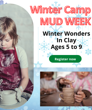 We have themed camps three hours per day for four days packed full of art projects. Each week is a different theme. Mud Weeks are heavily focused on clay hand-building and wheel throwing.