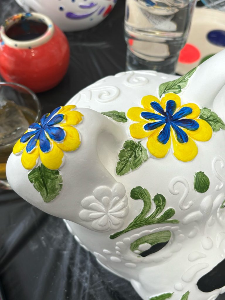 Attendees were provided with a variety of paints, brushes, and, of course, the ornamental sugar skulls themselves, which became blank canvases for personal artistic expression.