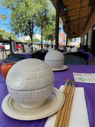 Participants painted Death Star Banks using acrylic paints, making it ready to take home once it dried!